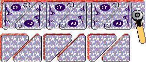 2. Place the triangle template on strips and rotary cut, rotating the template to conserve fabric. Don't forget to nip the corners (this is easiest to do after the triangles are cut).