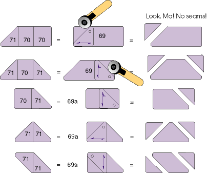 For example, cut a rectangle using Template 69 (Set L) and use triangle Template 71 to cut away the excess fabric.