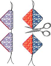 Do not separate the triangles after cutting - leave them in pairs, right sides together, as they are now ready for sewing.